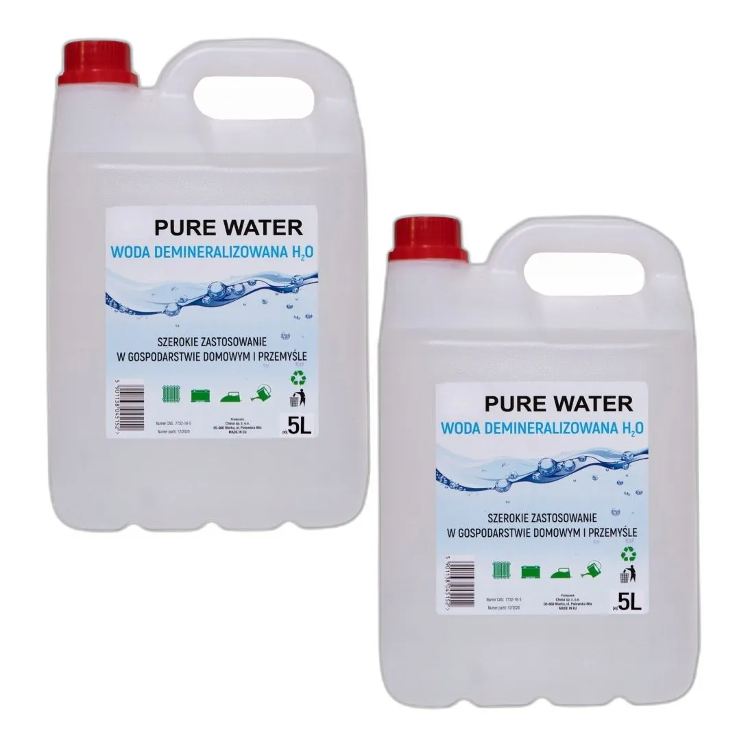 WODA DESTYLOWANA DEMINERALIZOWANA 5L DO ŻELAZKA DO AKUMULATORA 2x — do celów edukacyjnych i badawczych